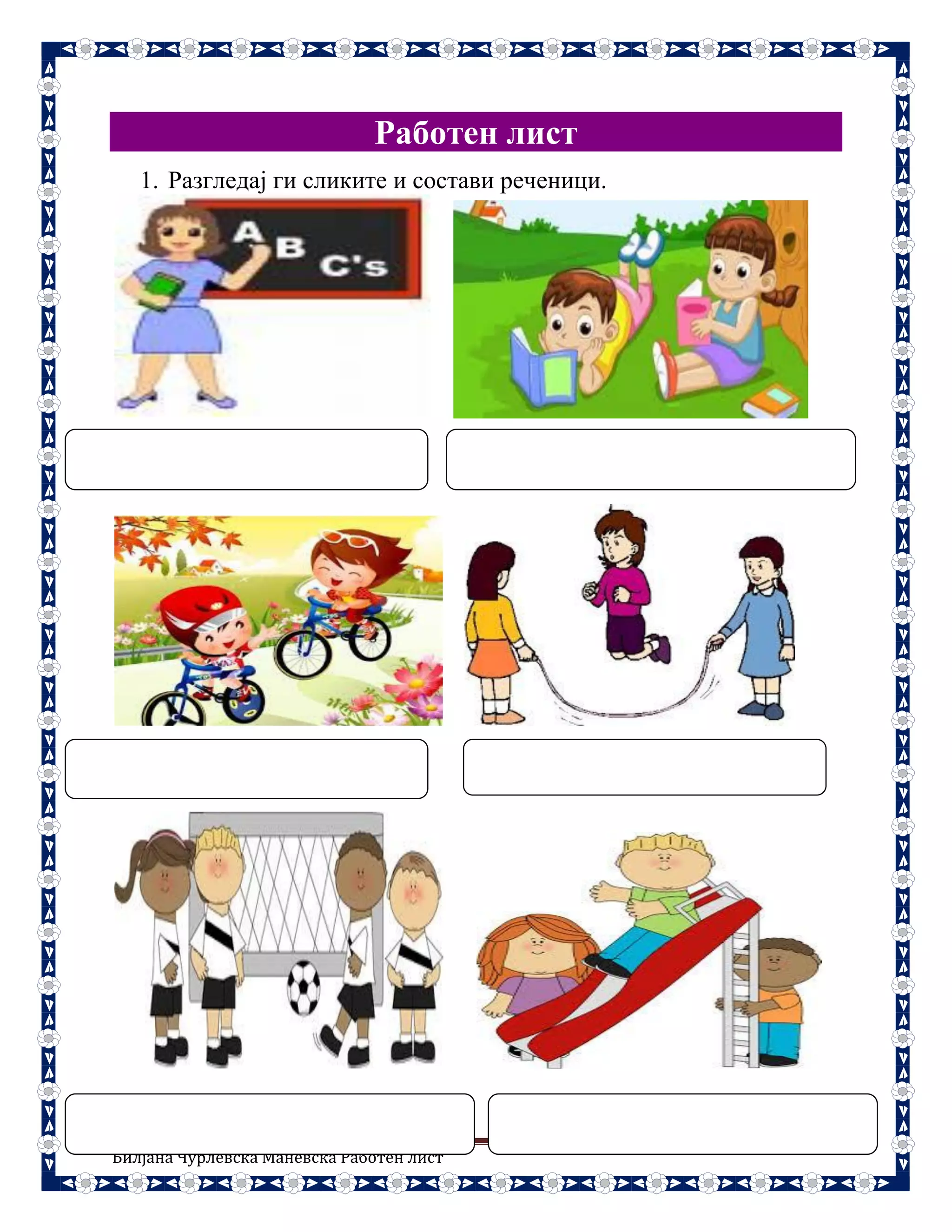 2. Задача:Запиши ги сите именки и глаголи по сликите.