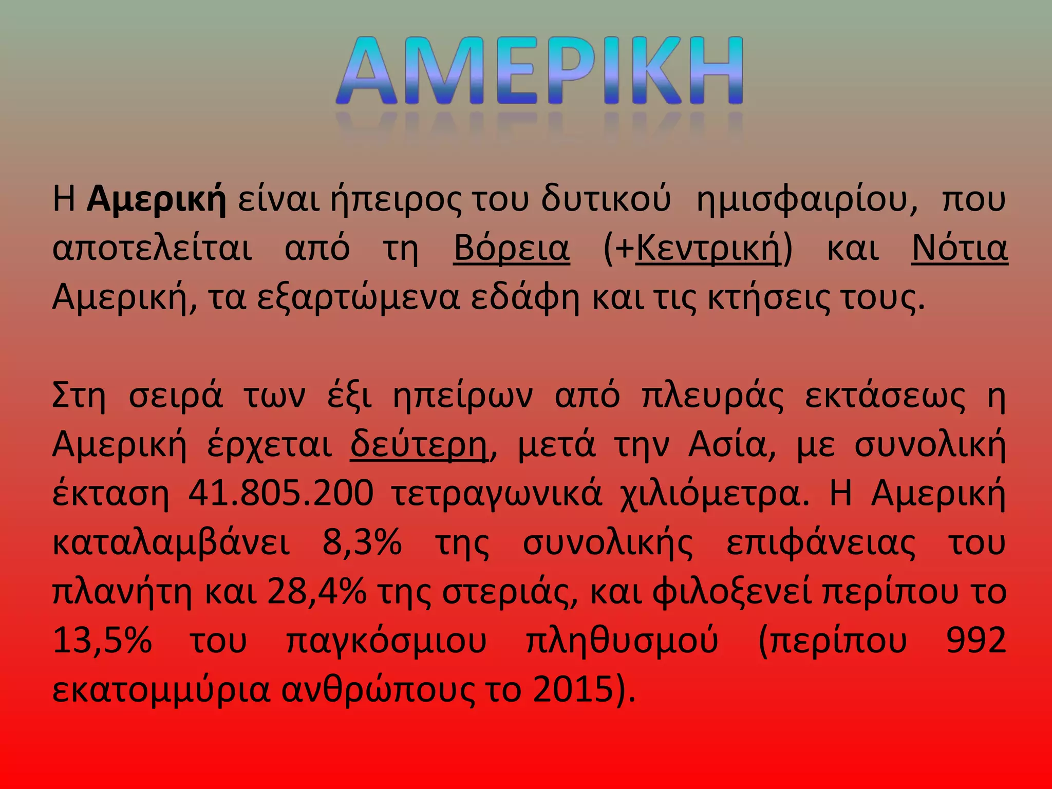 έκταση 41.805.200 τετραγωνικά χιλιόμετρα. Η Αμερική