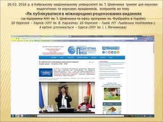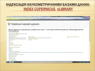 Презентація до виступу головного бібліотекаря відділу науково-методичної роботи Харківської державної наукової бібліотеки ім. В. Г. Короленка І. А. Карнаух в рамках циклу занять з професійного розвитку «Наукова бібліотека: інтеграція у міжнародний науковий простір», 10 березня 2016 р.