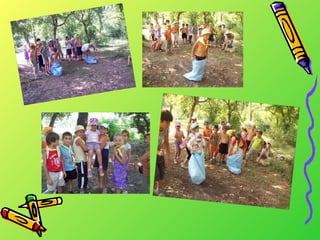 зелен градски лагер 1. 2. Под ръководството на опитни педагози и аниматори през лятото малчуганите на Варна от 7- 12 години имаха възможността да се възползват от летен екотуризъм и спорт. 3. Десет дневната програма включваше: Посещавани исторически места, природни забележителности и екопаркове . Занимателни игри за оцеляване сред природата и скаутски умения. 4. 1. Аладжа манстир и Ковшак чешма 2. Природен парк “Песента на гората” 3. Екопарк – Аспарухово и Белослав - завод за стъкло 4. Екопарк - Златни пясъци 5. Прабългарско селище - Звездица 6. Джанавара 7. Побити камъни 8. Устието на р. Камчия 9. Морска градина 10. Вълщебния извор - Девня 5. 6. 7. 8. 9. 10. 11. 12. 13. 14. 15. 16. 17. 18. 19. 20. 21. 22. 23. 24. 25. 26.