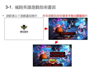 3-3. 瘋跑英雄遊戲指南畫面 • 請跟著以下遊戲畫面操作