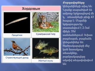 1. Բոլորին բնորոշ է քորդան։ Ցածրակարգերի մոտ այն պահպանվում է նույնիսկ