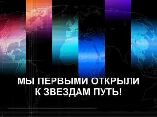 Документ описывает достижения СССР в космонавтике, начиная с теоретической работы Константина Циолковского и первого искусственного спутника Земли в 1957 году. Упоминается первый человек в космосе Юрий Гагарин, а также значительные события, такие как первый полет женщины Валентины Терешковой и первый выход в открытый космос Алексея Леонова. В конце документа подчеркивается, что исторически Гагарин останется символом советских космических побед.