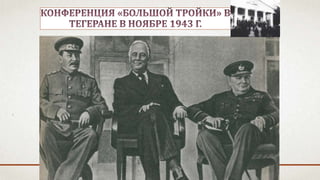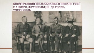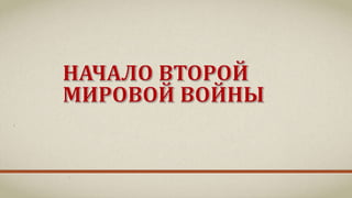 Документ описывает международные отношения и события, предшествовавшие Второй мировой войне, включая агрессии Германии, создание блоков агрессивных государств и общеевропейские конфликты. Он освещает начало войны, основные военные действия и стратегические ошибки, включая нападение на СССР и последствия для Красной армии. Также обсуждены меры, предпринятые для укрепления обороноспособности СССР и начало Великой Отечественной войны.