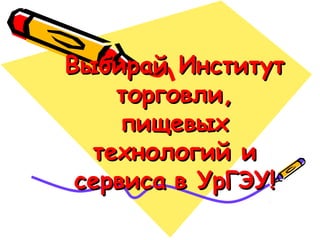 Институт торговли в УрГЭУ предлагает обучение по направлениям туристического бизнеса и гостеприимства, готовя специалистов для работы в гостиничном, ресторанном и туристическом секторах. Программа включает практики за границей, участие в мероприятиях национального уровня и высокий уровень языковой подготовки. Студенты могут пройти стажировки в европейских странах и получить диплом международного образца.
