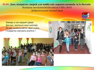 1 квітня уБілицькій загальноосвітній школі № 10 відбувся День відкритих дверей для батьків майбутніх