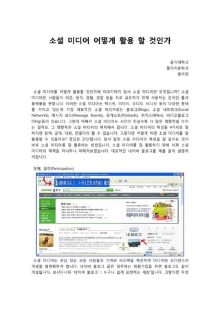 를 가지고 있는데 가장 대표적인 소셜 미디어로는 블로그(Blogs), 소셜 네트워크(Social