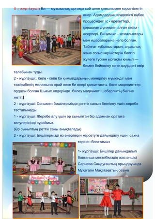 2 - жүргізуші: Бишілермізді өз өнерлерін көрсетуге дайындалу үшін сахна