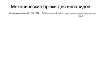 Документ обсуждает проблемы инвалидов, стремящихся к улучшению качества жизни через механические брюки. Основное внимание уделяется потребностям и желаниям целевой аудитории, а также недостатку доступных решений для их трудоспособности. Указано, что лягчения и возможность ходить могут существенно изменить жизнь клиентов.