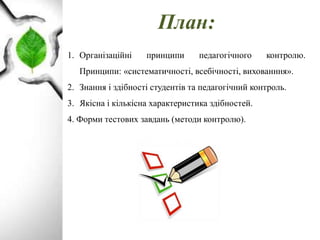 навчальну діяльність та виховну роботу. Контроль, який принижує особу студента, не може