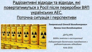 Радіоактивні відходи та відходи, які повертатимуться з Росії після переробки ВЯП українських АЕС. Поточна ситуація і перспективи