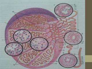 эс нь годуу хялгасан судсыг тойрон бүлгээр орших ба харьцангуй том дугуй эсвэл олон талт хэлбэртэй, сийвэн нь хүчилсэг чанартай ба гликопротейдын оршихуун гликогены мөхлөгүүд савханцар хэлбэртэй уургийн кристаллойд зэргийг агуулсан байдаг.