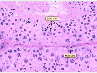 сперматогенезын хэвийн явц, бэлгийн нэмэлт булчирхайнуудын хөгжил үйл ажиллагаанд нөлөөлнө. • Тестостерон нь сертолын эсийн андроген холбогч уургийн ялгаралтыг ихэсгэнэ. • Дигидротестостерон нь гадна бэлэг эрхтний хэлбэржилтийг хангах бөгөөд анаболик нөлөө үзүүлнэ. Лейдигийн эсийн үүрэг