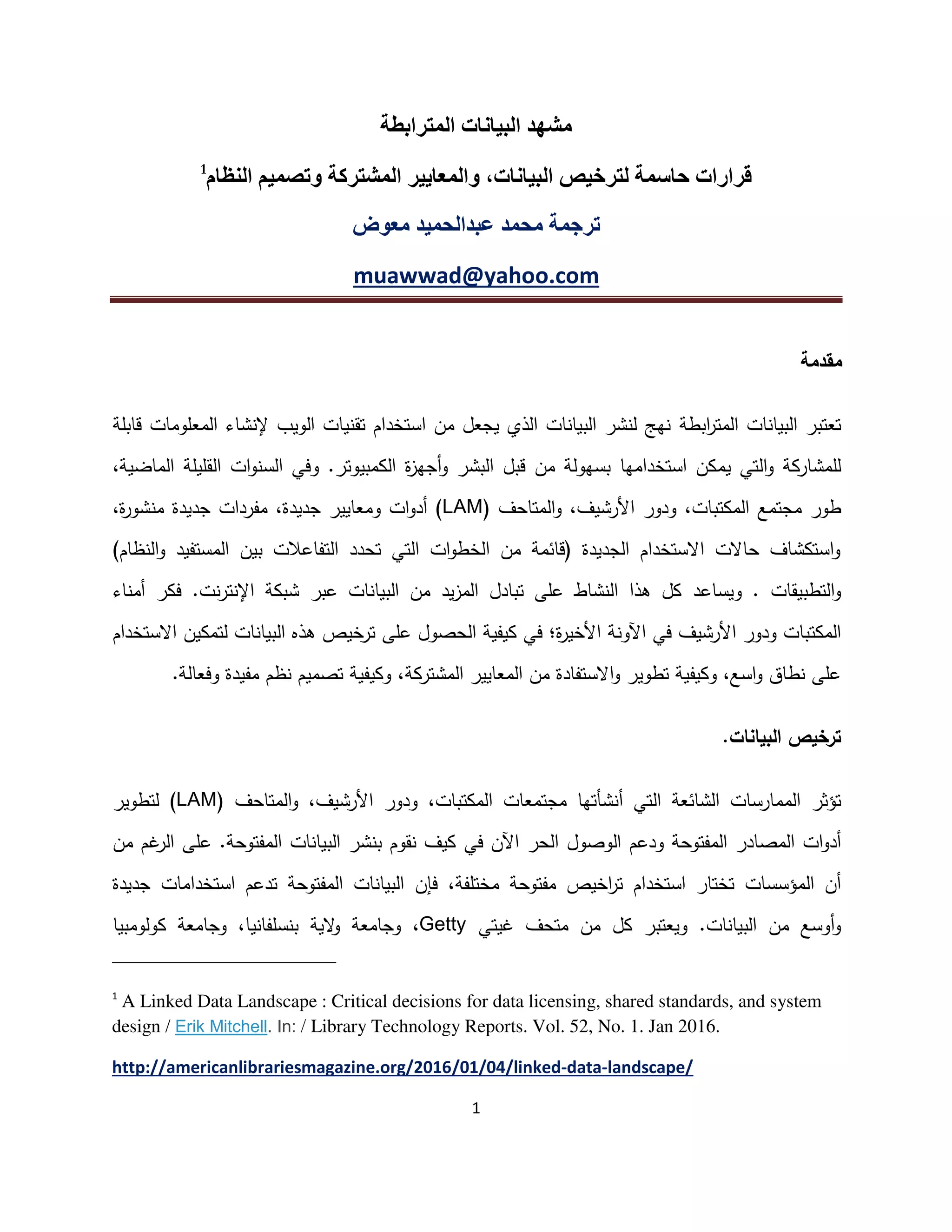 تناقش الوثيقة أهمية المعايير المشتركة واتخاذ قرارات حاسمة لترخيص البيانات في بيئة البيانات المرتبطة، كما توضح دور المجتمعات في تطوير الاستخدامات الجديدة. تشير إلى ضرورة استخدام أساليب مفتوحة لدعم المؤسسات في الاستفادة من البيانات بطريقة فعالة ومبتكرة. تسلط الضوء على التحديات والممارسات الحالية التي تؤثر على تصميم الأنظمة وتبادل المعلومات.