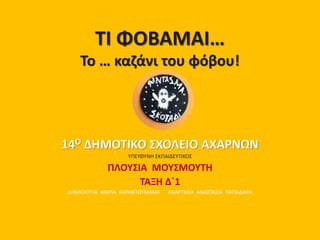 καζάνι του φόβου! 14Ο ΔΗΜΟΤΙΚΟ ΣΧΟΛΕΙΟ ΑΧΑΡΝΩΝ ΥΠΕΥΘΥΝΗ ΕΚΠΑΙΔΕΥΤΙΚΟΣ ΠΛΟΥΣΙΑ ΜΟΥΣΜΟΥΤΗ ΤΑΞΗ Δ΄1 ΔΗΜΙΟΥΡΓΙΑ ΜΑΡΙΑ ΚΑΡΑΝΤΟΥΜΑΝΗ ΑΝΑΡΤΗΣΗ ΑΝΑΣΤΑΣΙΑ ΠΑΠΑΔΑΚΗ