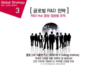 켈로그의입맛의 현지화전략 & 중앙집권형의R&D 연구센터 영양적 측면에서 고품질을 유지하되 맛과 취향은 현지를 고려한 전략을 구사할 수 있게 함글로벌 기업이 현지화를 할 때는 이처럼, 그 나라의 문화, 정서, 취향에 관한 전반적이고도 심도 깊은 이해가 바탕이 되야 함