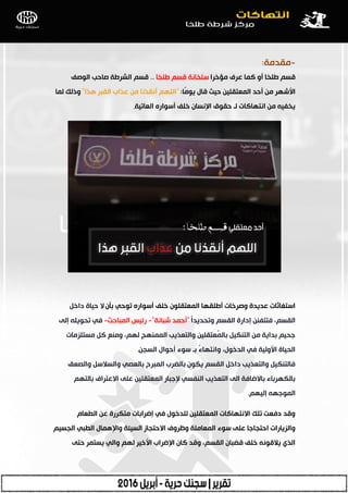 صباح الإثنين 11 أبريل 2016، استيقظ أهالي الدقهلية على رسالة من معتقلي مركز شرطة طلخا يعلنون فيها دخولهم إضرابًا مفتوحًا عن الطعام اعتراضًا على الانتهاكات المستمرة بحقهم.