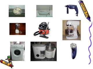 เครื่องบดอาหาร เครื่องผสมอาหาร เครื่องตีไข่เครื่องโกนหนวดไฟฟ้า อื่นๆ พัดลม เครื่องปรับอากาศ เครื่องดูดฝุ่น เครื่องซักผ้า เครื่องตัดหญ้า ชนิดที่ 3 เครื่องใช้ไฟฟ้าให้พลังงานกล เปลี่ยนพลังงานไฟฟ้า พลังงานกล เครื่องใช้ไฟฟ้าให้พลังงานกล เครื่องใช้ไฟฟ้าที่ให้พลังงานกล มีการเปลี่ยนรูปพลังงานไฟฟ้าเป็นพลังงานกล โดยอาศัยหลักการเหนี่ยวนำแม่เหล็กไฟฟ้า ด้วยอุปกรณ์ ที่เรียกว่า มอเตอร ์ และ เครื่องควบคุมความเร็ว เครื่องใช้ไฟฟ้าที่ให้พลังงานกล เช่น - 8.