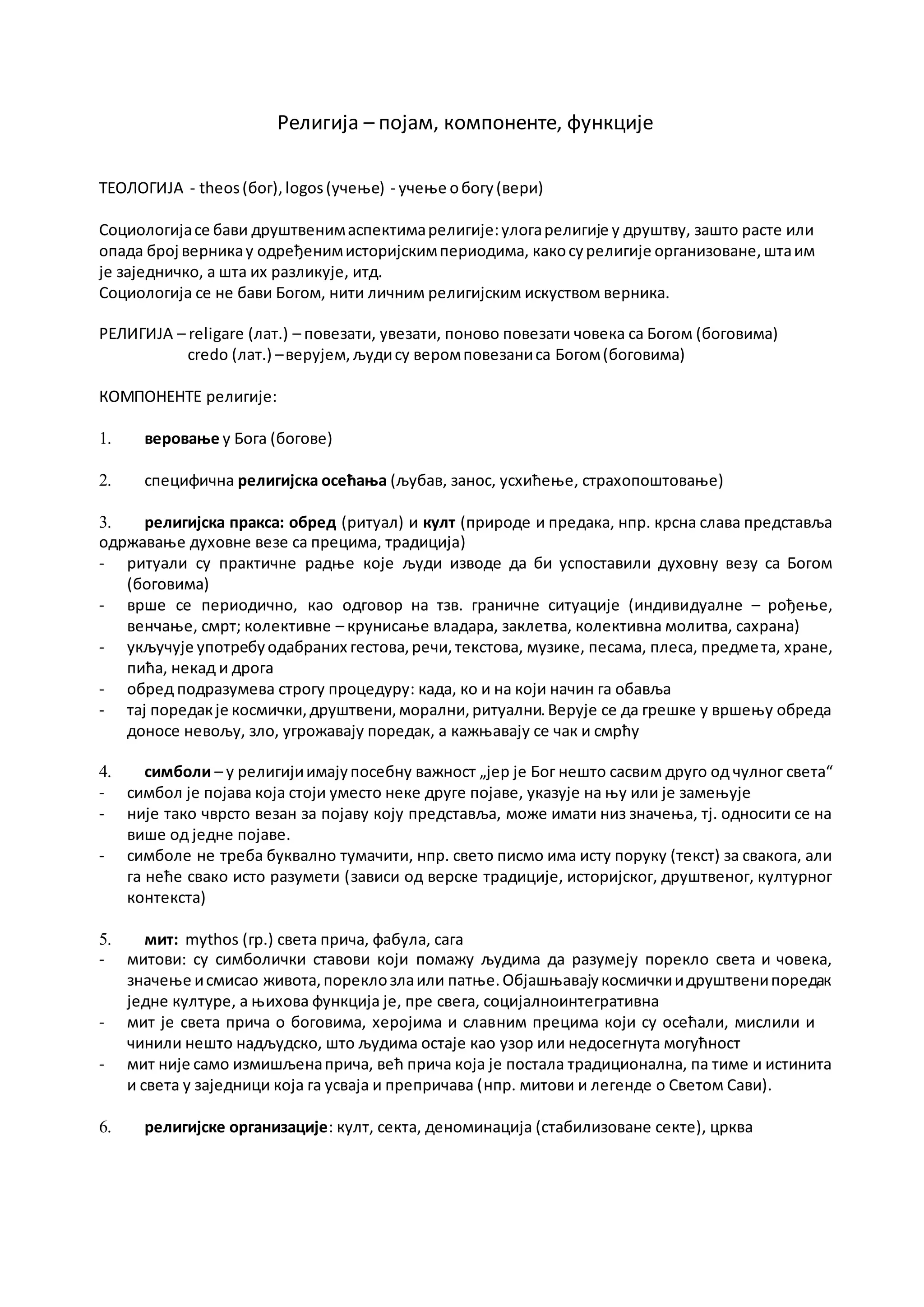 3. религијска пракса: обред (ритуал) и култ (природе и предака, нпр. крсна слава представља