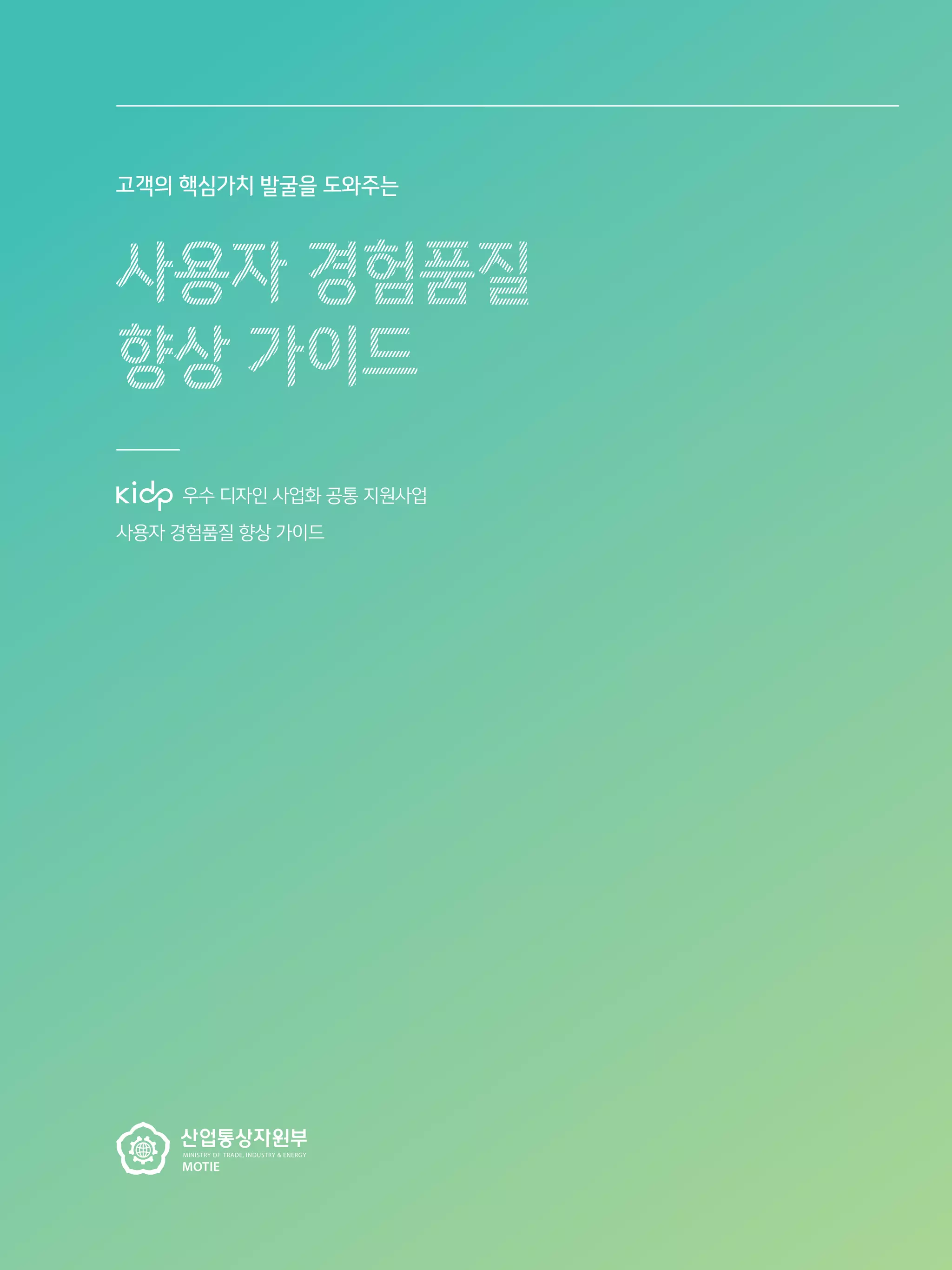 ‘사용자 경험품질 향상 가이드’는 산업통상자원부와 한국디자인진흥원이 제품 및 고객의 핵심 가치 발굴을 위해 사용자경험(UX)을 도입하고자 하는 연구개발자, 상품기획자, 디자이너(이하 실무자)에게 산업별로 구체적이고 실적용이 가능한 사용자 경험품질 요소에 대한 가이드라인을 제시하기 위한 목적으로 개발되었다.