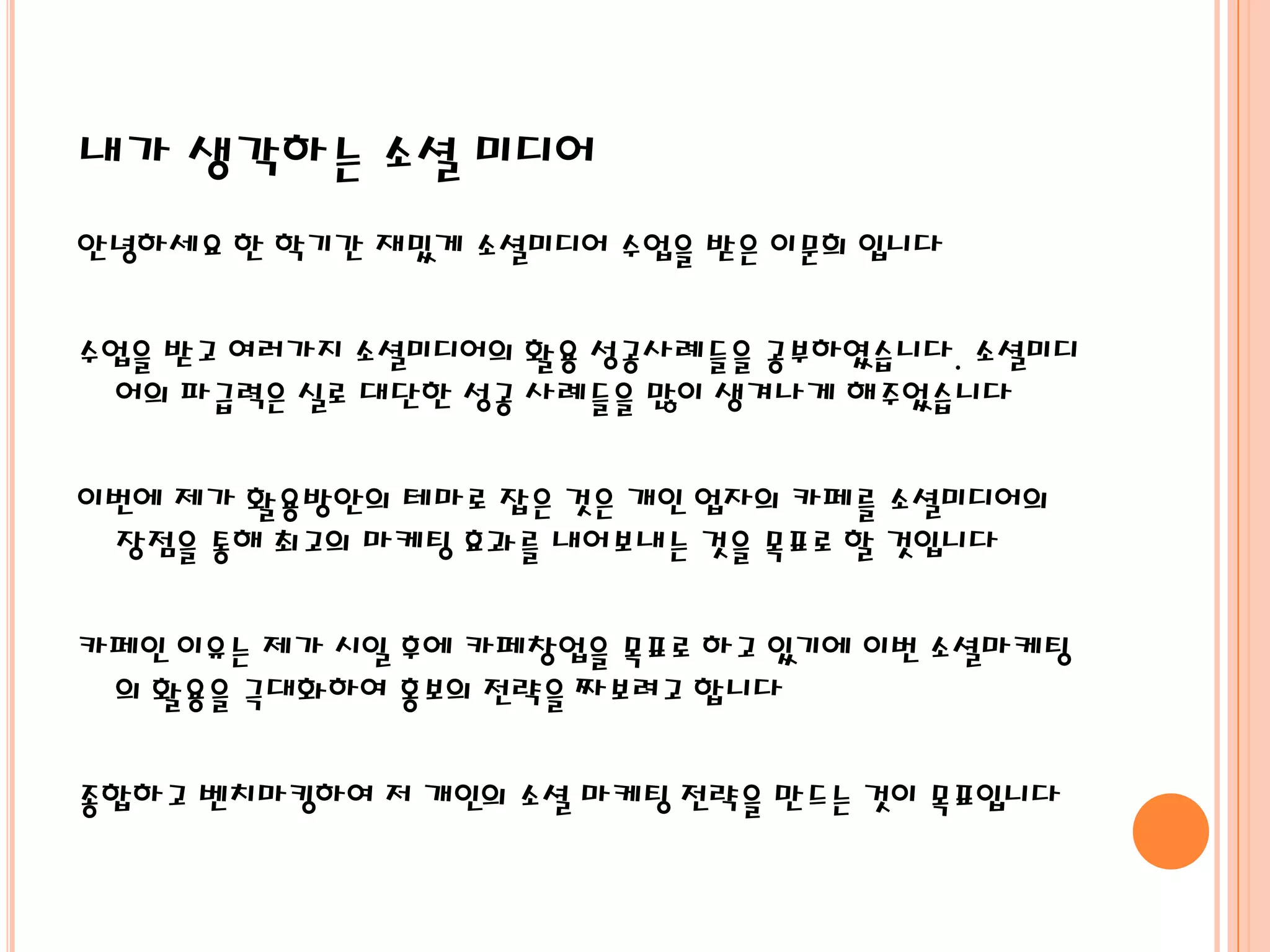 이번에 제가 활용방안의 테마로 잡은 것은 개인 업자의 카페를 소셜미디어의