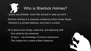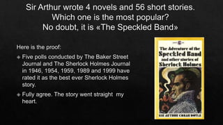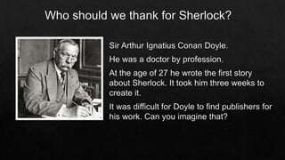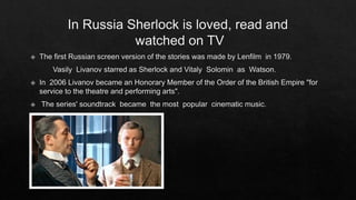 The document discusses the impact of Sherlock stories that gained popularity through the Strand Magazine for over 40 years. It mentions a Russian adaptation featuring Igor Petrenko and Andrei Panin, who passed away before completing his role. Additionally, it highlights the filming of 'The Abominable Bride' episode at Tyntesfield House and expresses a desire to create a map of the location.