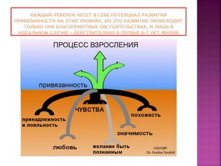 Документ освещает теорию привязанности, основанную на работах Джона Боулби и последующих исследователей, подчеркивая важность эмоциональной связи между детьми и их опекунами для их социального развития. Обсуждаются этапы формирования привязанности и различные типы привязанности, такие как безопасная и небезопасная, а также влияние материнского поведения на эмоциональное здоровье детей. Теория привязанности стала основой для новых подходов в психологии, психотерапии и разработке стратегий социальной защиты детей.