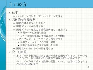 設計の原則 単一責任の原則SRP(The Single ResponsibilityPrinciple)クラスは、1つの役割(責任)だけを持つ1つの理由のみによって、クラスが変更される役割を単独でテストできる役割=変更理由=テスト単位凝集(cohesion)と同意凝集とは、モジュールに含まれる要素間の機能的な結び付き原則の適用条件役割の変更が確実に想定される場合理由なく適応すると、「不必要に複雑な設計」となる役割をテストする必要がある場合問題の予兆(もろい設計)ある役割の変更に伴い、本来関係ないと思われる役割のクラスに変更の影響がある独立したテストが困難なクラスがある39