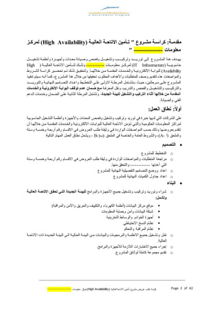 The document outlines a request for proposals (RFP) for a high availability infrastructure project aimed at enhancing electronic portal services in Saudi Arabia. It includes details on submission deadlines, inquiry procedures, and the objectives of the project, which focus on ensuring consistent and reliable IT services. Additionally, it specifies requirements for potential vendors regarding technical capabilities and project deliverables.