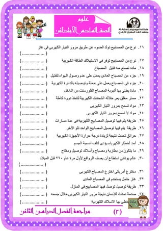 الصفلسادساالبتدائى انىحذجانىحذجوانشاتعح انثانثحوانشاتعح انثانثح ((11: انعهمى انمصطهح أكتة ): انعهمى انمصطهح أكتة ) 1.ّّٚجٌش ج٤ٌع ٓ١ذ ٍّجٌم ٠طٛجؾى ػٕىِح ضكىظ ؿر١ؼ١س ظحٍ٘ز .) .................. ( 2.ّّٚجٌش ٍّجٌم ٓ١ذ ج٤ٌع ضطٛجؾى ػٕىِح ضكىظ ؿر١ؼ١س ظحٍ٘ز .) .................. ( 3.ػٛء ٞأ ٠ظٍٙح ٨ ِٕـمس ............... () .... 4..ُجٌّؼط ُٓجٌؿ نٍف ْٛضى ِظٍّس ِٕـمس) .................. ( 5.جٌؼٛء ذؼغ ٠ظٍٙح ِظٍّس ٗشر ِٕـمس .) .................. ( 6.ٍٝأػ ِٜٛٓط ٟف ٍّجٌم ٠مغ ػٕىِح ٠كىظ جٌىٓٛف أٔٛجع أقى .) .................. ( 7ٟف ٍّٗذأو ٍّجٌم ْٛ٠ى جٌهٓٛف أٔٛجع أقى ..ًجٌظ ِٕـمس) .................. ( 8.ًجٌظ ِٕـمس ٟف ٍّجٌم ِٓ ؾُء ْٛ٠ى جٌهٓٛف أٔٛجع أقى .) .................. ( 9.ِؼ١ثس ٌٗ٘ح ٗذ ضك١ؾ أْٛو لٍص ّّجٌش ٗ١ف ْٛضى وٓٛف .) .................. ( 11.جٌّٓحٚ٠س ٌَ٣ؾٍج ِمٍذس طٌٛز ْٛ٠ى َؾٙح .) .................. ( 11.ٍٝو وٓٛف ٗ١ف ٍُٞ٠ ِٕـمس .) .................. ( 12.وٓٛف ٗ١ف ٍُٞ٠ ِٕـمسٝؾُت.) .................. ( 13.ػىْحش ٗ١ف َ٠ٓطهى ضٍٓىٛخ .) .................. ( 14.ٗ١ف َ٠ٓطهى ضٍٓىٛخٍِج٠ح.) .................. ( 15ٚج جٌػّحٔ١س ٚجٌىٛجود ّّجٌش ..ٌ٤لّح) .................. ( 16.أيٌع أٌذغ ٌٙح ًجٌشى ٌٌٛر١س ِؿٍز .) .................. ( 17.ُجٌكؿ طغ١ٍز طهٍ٠س وٛجود .) .................. ( 18.ُجٌكؿ ور١ٍز غحَ٠س وٛجود .) .................. ( 19.جٌشّٓ١س جٌّؿّٛػس ٟف جٌىٛجود ٍأور .. () .................