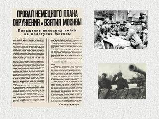 Битва под Москвой, начавшаяся 30 сентября 1941 года и завершившаяся 20 апреля 1942 года, стала ключевым событием Великой Отечественной войны с участием свыше 3 миллионов человек. 5 декабря 1941 года советские войска начали контрнаступление, отбросив фашистские силы на 100-250 километров и нанеся Германии первое серьезное поражение во Второй мировой войне. Битва продемонстрировала героизм советских солдат, включая подвиг 28 панфиловцев и остановила наступление противника на столицу.