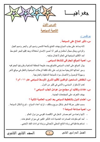 ٚٔؾش اٌغ١بؽخ ٟف اٌغ١بؽخ ٟف ٓ١ٌٍٍِْب اٌجؾش٠خ اٌزّٕ١خ ثجشاِظ َا٤٘زّب . ٓ١ٕاٌّٛاى 5-. ٚرشِ١ّٙب ٚاٌيج١ْ١خ ا٢صش٠خ اٌغ١بؽ١خ ٓثبالِبو َاال٘زّب 6-ا اٌغ١بؽ١خ إٌّبىك ٟف االعزضّبس ٍّٝ ٚا٤ّّبي اٌخبؿ ُاٌميب ِ١رؾغٌغذ٠ذح 7-. اٌّغزذاِخ اٌزّٕ١خ ٍّٝ رْزّذ ، عذ٠ذح ع١بؽ١خ أّٔبه أعزؾذاس : ٍٍت ٌلاس- : ًالٔأ-. اٌغ١بؽ١خ ٌَم١ب ٚاٌجؾش٠خ اٌيج١ْ١خ اٌّمِٛبد أ-ِاٌّٛل←(اٌذاخٍ١خ اٌغ١بؽخ ٍّٝ ٠ئصش ٚاٌزبس٠خ١خ ٚاٌغغشاف١خ إٌّبخ١خ اٌيج١ْخ ؽ١ش– ) ٚاٌخبسع١خ ة-: إٌّبؿ-عزة ٍّٝ ٠غبّذٚاٌجؾش ٚاٌجش ٞٚاٌٛاد ًاٌغج ُ١ٚٔغ اٌؾّظ ثؤؽْخ ٌٍِزّز اٌغ١بػ . ٌٍغ١بػ وج١ش عزة اٌّزٛعو اٌجؾش ِٕبؿ ُ١ٍال ًِض عـ-: اٌزنبس٠ظ-ًؽى اٌغجبي ًِض اٌغ١بؽخ ٍّٝ رئصش اٌغيؼ َِب٘ش10ٟ٘ٚ اٌ١بثظ ِٓ % . ٚاٌٙذٚء َٚاالعزؾّب اٌغٍ١ذ ٍّٝ اٌزضٌظ + ٟاٌغ١بؽ اٌغزة ِٕبىك ُ٘أ شا: ًاٍَ-اٌجؾش٠خ اٌّمِٛبد أ-ُ١ٍْٚاٌز ٚاٌزضم١ف ٍّ١ٙب ٌٍزْشف اٌغ١بػ ٠فنٍٙب ؟ اٌؾْج١خ ٚاٌّٛسٚصبد اٌزبس٠خ١خ ا٤صبس ٌغزة ًِّٛا ِٓ ُ٘ٚرمبٌ١ذ ُّٙٚبدار اٌؾْٛة ِٛسٚصبد ٚ ٟاٌّبم ؽنبسح ٍّٝ ٚاٌٛلٛف . ٟاٌغ١بؽ ة-: ًإٌم ًٚعبئ-ٞثش–ٞثؾش–. ٟاٌغ١بؽ اٌغزة ٟف ٠ئصش ٜٛع عـ-سأط: اٌّبي-اٌفٕبدق أؾبء ًِض ٚريٛ٠ش٘ب ِٕيمخ ٞال اٌغ١بؽ١خ اٌّٛاسد العزضّبس ُِٙ . ٚااللبِخ اٌؾغض ًِض اٌغ١بؽ١خ ٚاٌخذِبد اٌزؾز١خ اٌجٕ١خ ريٛ٠ش ٚإٌّزغْبد ٞٚاٌمش د-: ٟاٌغ١بع ٚا٤عزمشاس ِٓ٤ا-. ُٙٚؽّب٠ز اٌذٌٚخ ًداخ اٌغ١بػ ٚؽشوخ ٌؾش٠خ ُِٙ