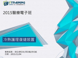 该文档介绍了一个冷热护理复健装置的系统设计,包括产品特点、系统架构、功能模式及操作流程。设备通过温度和压力感测器调控冷热水槽,提供运动恢复、中风复健、热敷和冷敷等多种使用模式。文档详细描述了微控制器韧体架构、手机应用和设备的组装过程。