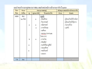 สถิติปี 54 สถิติปี 55 สถิติปี 56 สถิติปี 57 สถิติปี 58 180 240 300 360 420 478 จานวนนักเรียน จานวนนักเรียน