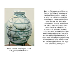 αντικειμένων και πραγματικά έργα τέχνης που διακρίνονταν όπως και τα μινωικά για την