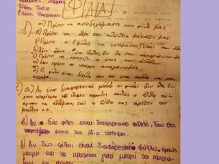 Δόθηκε στα παιδιά ένα χαρτί και τους ζητήθηκε, αφού γράψουν στην κορυφή το όνομά τους, να σκεφθούν