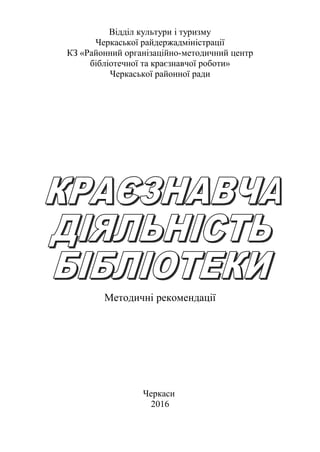 2. Краєзнавча діяльність бібліотек: Методичний посібник / Держ. іст.