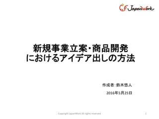 2016年5月25日 1 新規事業立案・商品開発 におけるアイデア出しの方法 Copyright JapanWork All