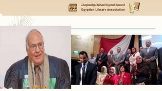 تأسست الجمعية المصرية للأرشيف والمعلومات للمكتبات عام 1944 وتعمل على توثيق وتعزيز الروابط بين المكتبيين. يسعى المجلس الحالي للجمعية إلى تطوير أداء المكتبات عبر معايير وعقد مؤتمرات سنوية ونشر الأبحاث. كما توفر الجمعية دورات تدريبية لأعضائها وتسعى لتوسيع نشاطاتها في مختلف المحافظات.