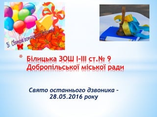 останній дзвоник 1. 2. *Мета: пропаганда та збереження традицій