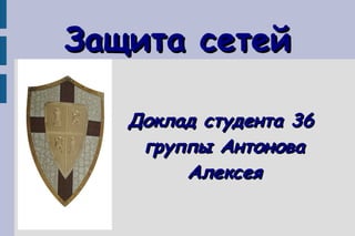 Доклад студента о защите сетей рассматривает использование межсетевого экрана для обеспечения безопасности внутренней сети компании и контроля доступа, а также описывает два способа настройки межсетевого экрана. Рассматривается возможность использования NAT для скрытия внутренних адресов от внешней сети и возможность создания защищенного канала (VPN) для связи удаленных офисов. Также упоминается настройка профилей доступа для пользователей и использование материалов с указанного сайта.