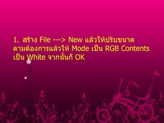 สร้าง File---> New แล้วให้ปร้บขนาด ตามต้องการแล้วให้ Mode เป็น RGB Contents เป็น White จากนั้นก็ OK - 3.