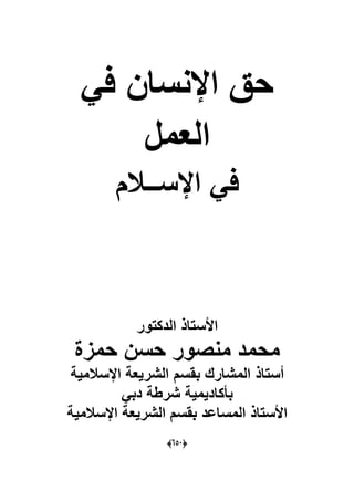 نتائج :ًالأو ٌمكنناالعمدل ًفد اإلنسدان "حدق الموضدوع هدذا بحدث بعدد :التالٌة النتابج هذه نستخلص أن "اإلسالم ًف- 1-دةدٌالعالم داتدواإلعالن دعٌةدالوض داتٌردالدس دالمداإلس دبقدس ددلدالعم ًدددف ددانداإلنس ددقدح ددرهدٌبتقر ،ددانداإلنس ددوقدبحق ددةدالمهتم دعدم دقدٌتف دادبم دهدلحماٌت دةدالالزم دماناتدالض دعدووض ،دهدل دهدوكفالت و اإلنسان قٌمة.كرامته 2-هللا خلدق ًالتد بالوظٌفدة ًاوثٌقد ًاارتباطد ٌرتبط العمل أن عدن ًالفضد ،الواسدع بمفهومهدا العبدادة ًوهد ،أجلها من اإلنسان هللا ددادأوكله ًالتدد المهمددة وتلددك ،الخالفددة لددوازم مددن العمددل أن .ًاوتكرٌم ًاتشرٌف لإلنسان 3-للكسدب ًاألصدل المصدر باعتباره العمل اإلسالم قدس والكدل ٌجدره ومدا والحاجدة الفقدر ضدد لإلنسدان الحصٌن حصن دإالدس دىدإل دطراردواالض دةدوالندام درةدالحس دندم داندلإلنس دادمنهم دهدجعل دؤندب دهدب دىدوارتق دلدالعم دؤندبش دالمداإلس دعدارتف دادكم ،داسدالن ،العبادة ضروب من ًاضربًوٌبتؽد ،هللا إلدى بها ٌتقرب ًالت– بفٌه اإلخالص–.اآلخرة ًف العظٌم الثواب 4-أًاددوجوب ًاددواجب دوندٌك دددق دهدمن دددالقص دبدبحس دلدالعم ن الشدخص علدى لإلنفاق إلٌه الحاجة حالة ًف ذلك وٌتحقق ،ًاٌعٌن حالددة ًفدد وكددذلك ،اآلخددرٌن علددى عالددة ٌكددون ال حتددى ،ذاتدده دندم دىدعل داقدلإلنف دهدٌإل دةدالحاجدٌهمدعل داقدباإلنف دخصدالش دزمدٌل تقدع ،ًاٌكفاب ًاوجوب ًاواجب العمل ٌكون قد كما ،ًاشرعالقٌدام تبعدة