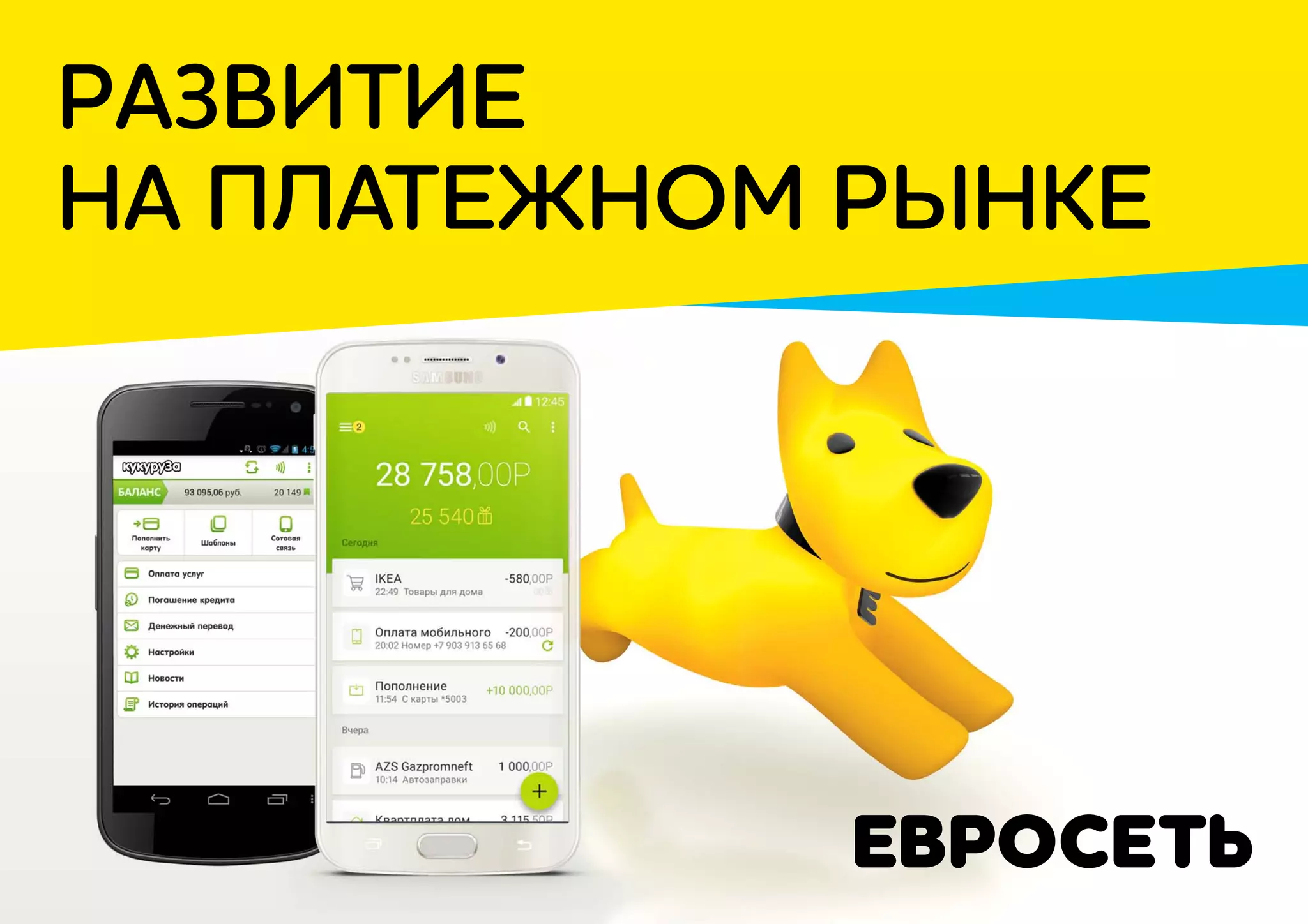Документ описывает развитие платежного рынка и успехи компании 'Евросеть' в этой сфере, включая независимость процессинга и универсальность сервисов. Приведены данные о росте объемов финансовых платежей и представлен обзор услуг для клиентов, включая возможности онлайн и офлайн. Также упоминаются маркетинговые программы и дальнейшие перспективы развития платёжной системы 'Кукуруза'.
