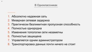Документ описывает архитектуру и функционирование распределенных систем в социальных сетях, в частности в 'Одноклассниках'. Основное внимание уделяется надежности, масштабируемости, управлению нагрузкой и обработке отказов. Упоминаются также инструменты и методы тестирования, диагностики и оптимизации производительности систем.