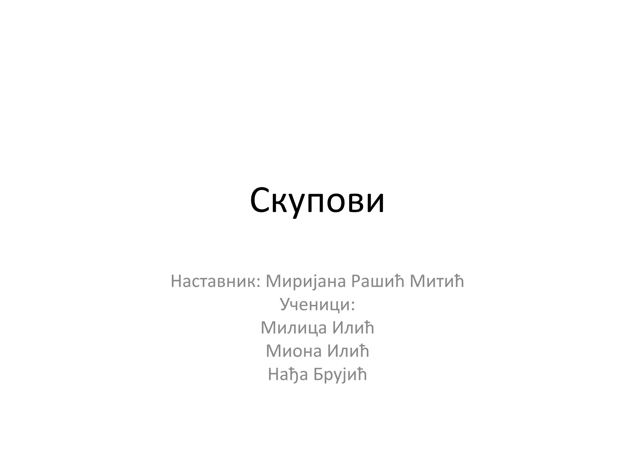 КОЈИ ИМАЈУ НЕКУ ЗАЈЕДНИЧКУ ОСОБИНУ, СВАКИ ОБЈЕКАТ У СКУПУ ЈЕ ЊЕГОВ ЕЛЕМЕНТ. Шта су скупови?: