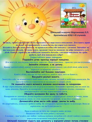 дітей. Однією з проблем, що найбільше непокоїть батьків, є питання поведінки, що треба