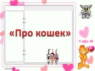 Документ посвящён кошкам, их характеристикам и интересным фактам. Рассматриваются особенности поведения, анатомии, различных пород и их взаимодействия с людьми. Также упоминается историография одомашнивания кошек и данные о их репродукции.