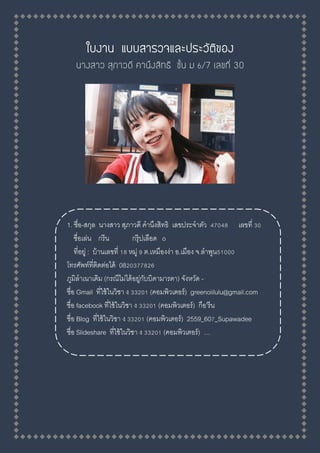 ใบงาน แบบสารวจและประวัติของ นางสาว สุภาวดี
