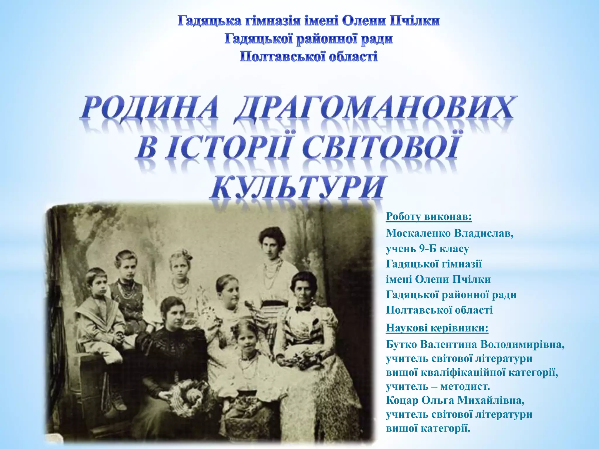 розкривають гадяцький період життя і творчості родини Драгоманових.